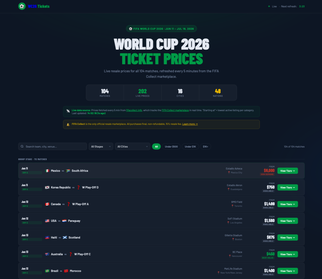 I’ve set up this website to track World Cup 2026 tickets.
